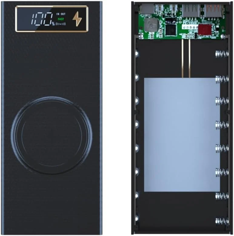 قاب پاوربانک فست شارژ 22/5 وات با وایرلس 15 وات یک محفظه نگهدارنده برای ۸ باتری ۱۸۶۵۰ است که امکانات شارژ سریع ۲۲٫۵ وات و شارژ بیسیم ۱۵ وات را ارائه میدهد.