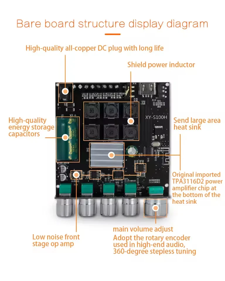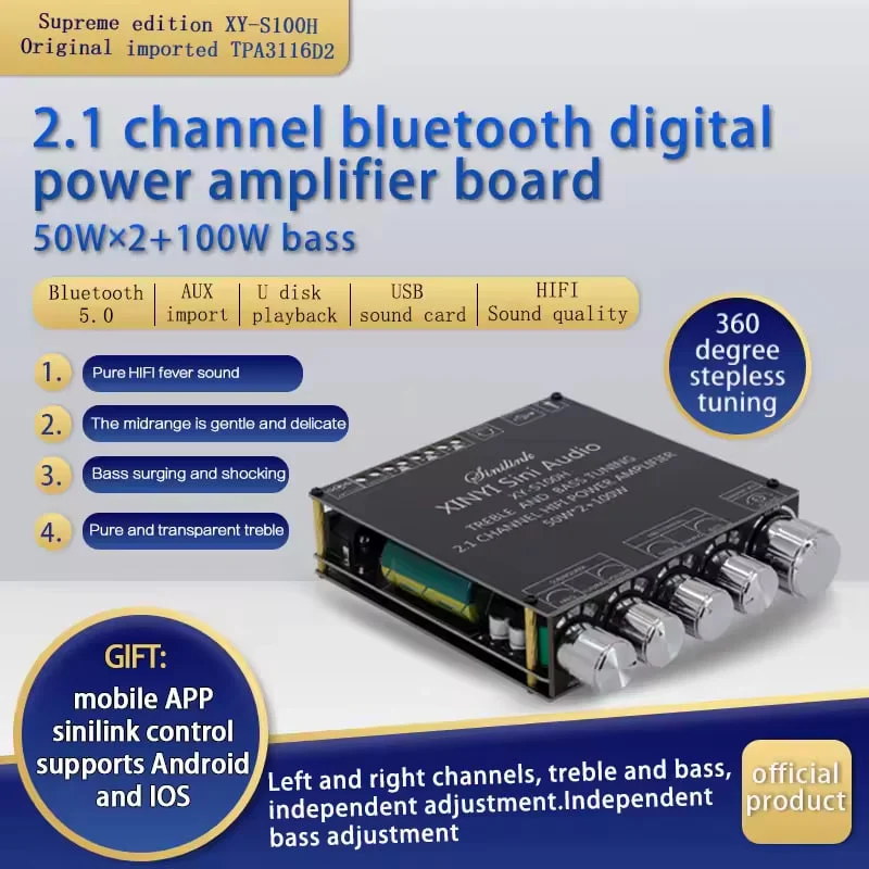 قیمت و خرید اینترنتی ماژول آمپلی فایر صوتی بلوتوث دار دو کاناله 50 وات + ساب 100 وات مدل XY-S100H از فروشگاه اینترنتی تکنوفراهان با ارسال سریع به سراسر کشور.