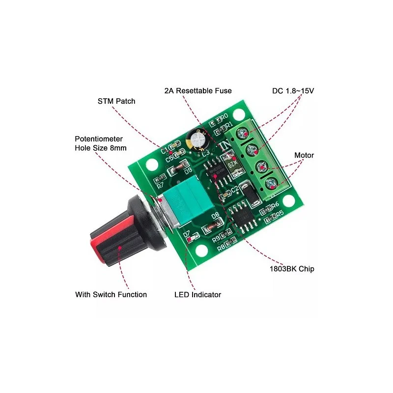 ماژول کنترل دور موتور معمولا برای کنترل میزان نور ال ای دی ها یا کنترل دور موتور ها توسط میکرو کنترلر از تکنیک PWM( مدولاسیون عرض پالس) استفاده می شود .