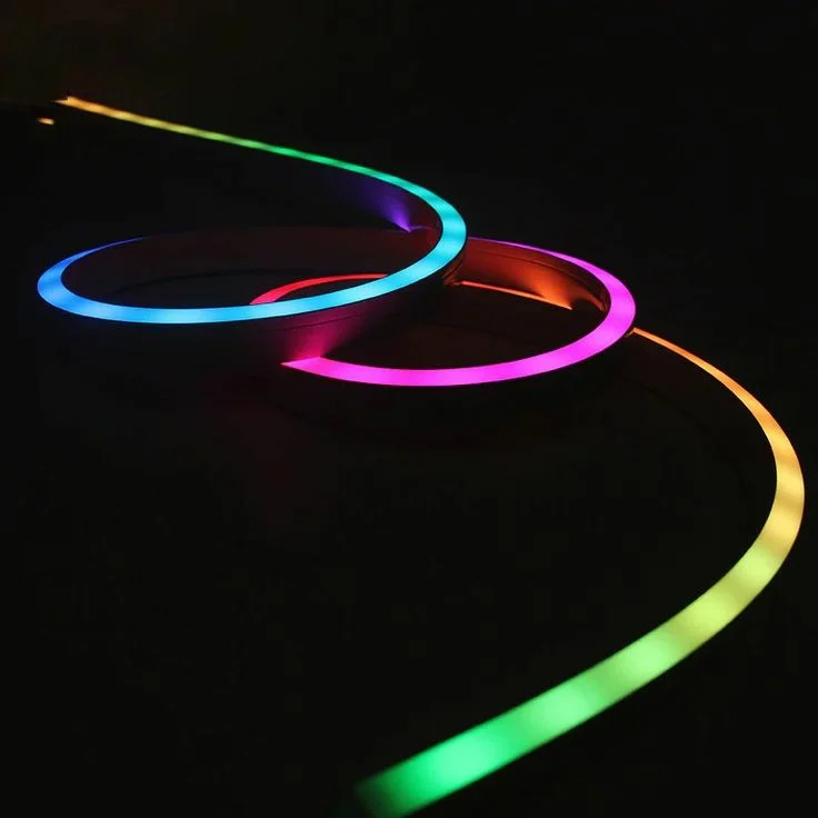 نئون فلکسی 12 ولت RGB آیسی دار دیتاپذیر نورپردازی داخل خودرو،چراغ های خودرو،دور باند ها و میدرنج خودرو اتاق گیمینگ و استریم،کرنرلایت پشت تی وی جلوه ای بسیار زیبا می دهد