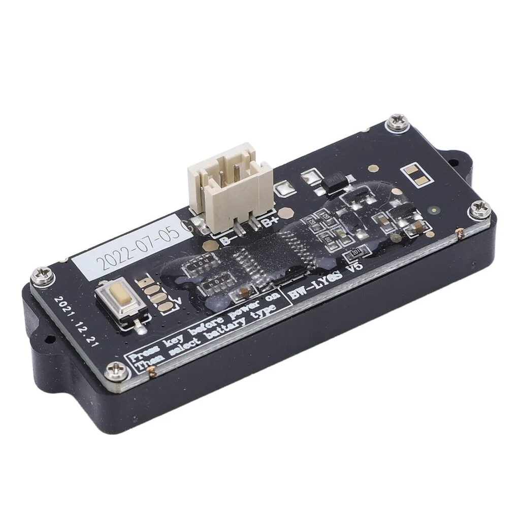 با این ماژول می توان وضعیت شارژ باتری های اسیدی با ولتاژ 12، 24، 36 و 48 ولت و همچنین باتری های لیتیومی 3 سل تا 14 سل را اندازه گیری کرد و در صد شارژ را مشاهده کرد. با دکمه در پشت ماژول می توان نوع باتری را انتخاب نمود.