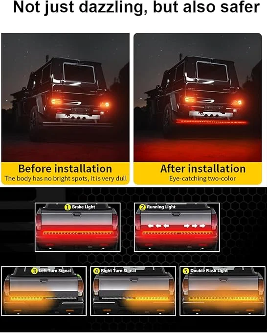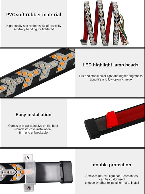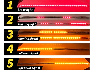نوار LED سپر عقب خودرو با افکت داینامیک راهنما، ترمز و دنده عقب، ضدآب و منعطف، مناسب انواع ماشین، نصب آسان با چسب و سیمکشی مستقیم.