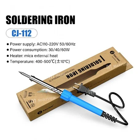 هویه KAILIWEI مدل CJ-112 یک ابزار لحیمکاری دستی با طراحی ساده و عملکرد قابلاعتماد است که برای تعمیرات الکترونیکی، پروژههای DIY و کارگاههای آموزشی مناسب میباشد.